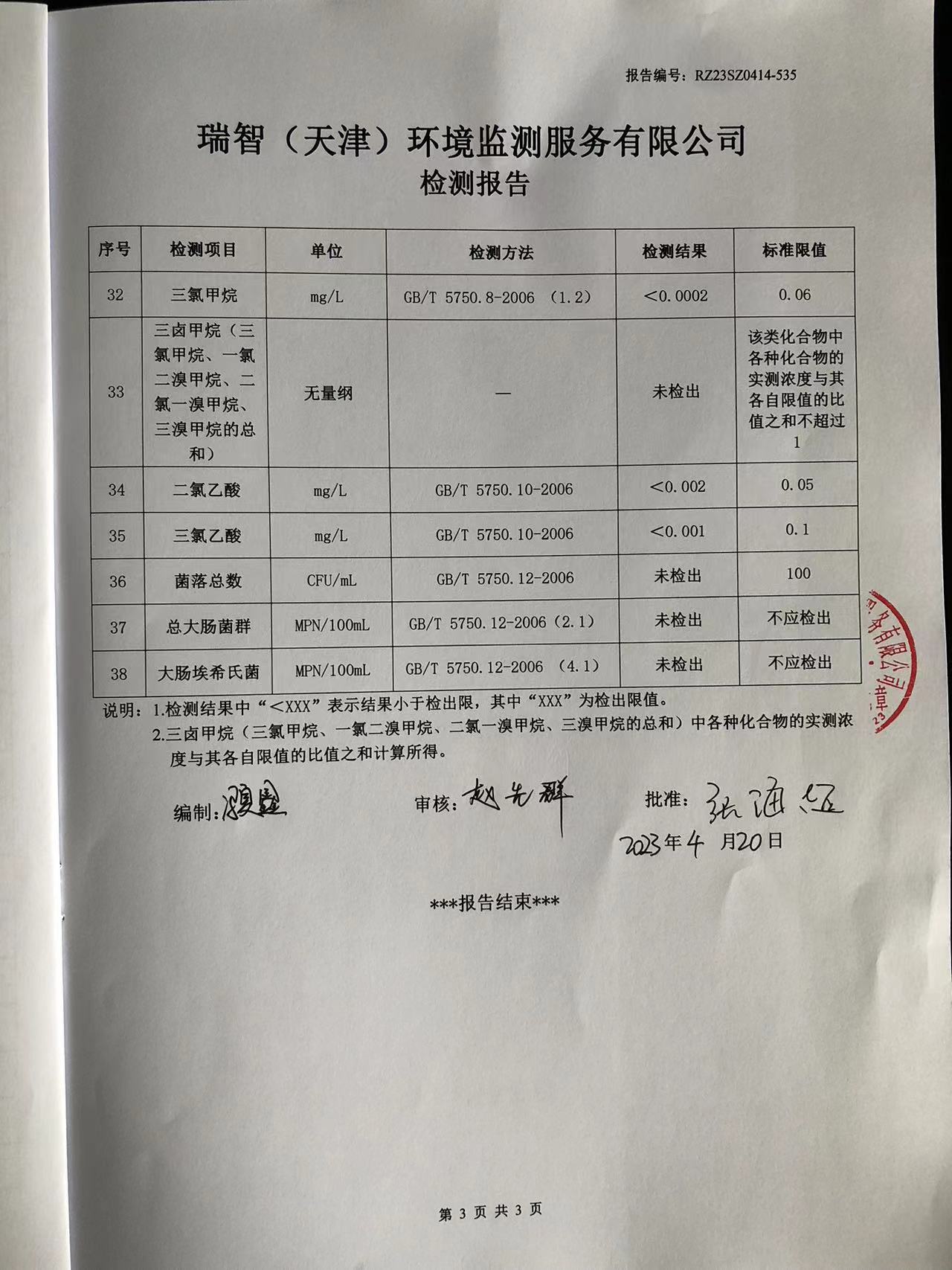 2023年4月份水質(zhì)檢測(cè)報(bào)告